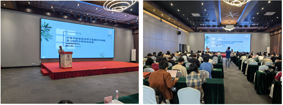 5月27日,在2025年广州科技活动周——从化区一区一品牌活动“流溪河全民科普在行动”中,从化区农业农村局农业推广中心诸卫平进行了以“中草药技术防治家庭花卉病虫害”为主题的科普讲座,江埔街各村农技员、种植专业合作社以及农场种植户代表共187人参加培训。诸卫平对常见中草药科普介绍、 中草药洗涤液丰收瓶的制取、中草药洗涤剂丰收瓶对家庭花卉病虫害的功效与成果等科普讲解。